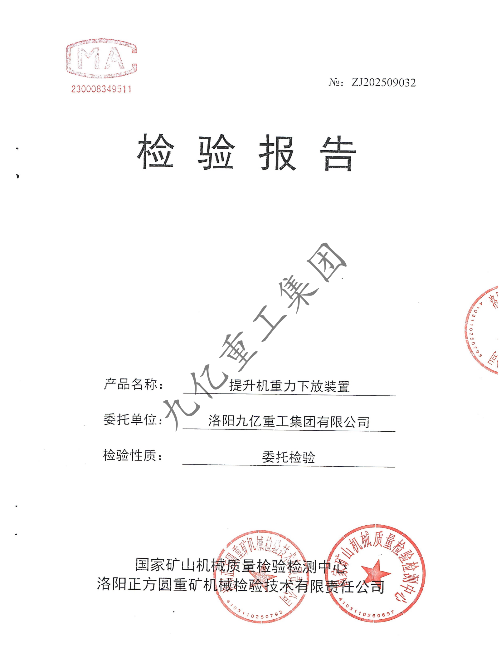 提升機重力下放裝置檢驗報告